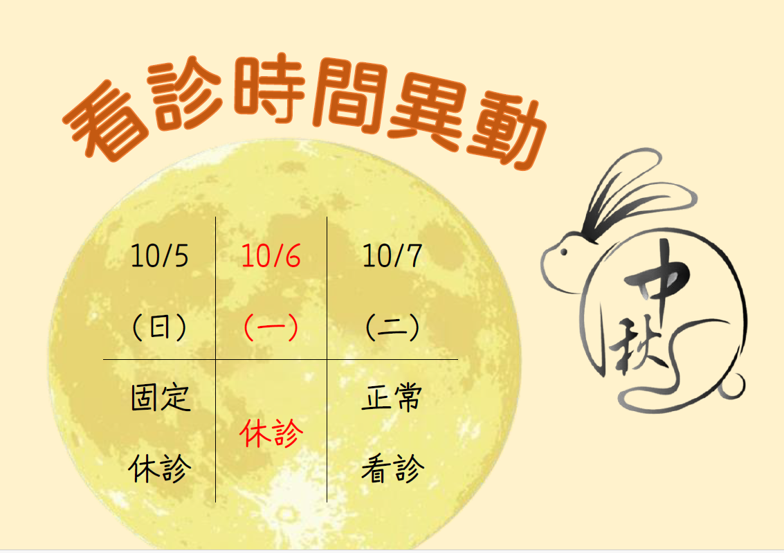 中秋、國慶、光復節休診時間